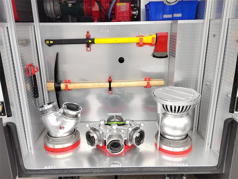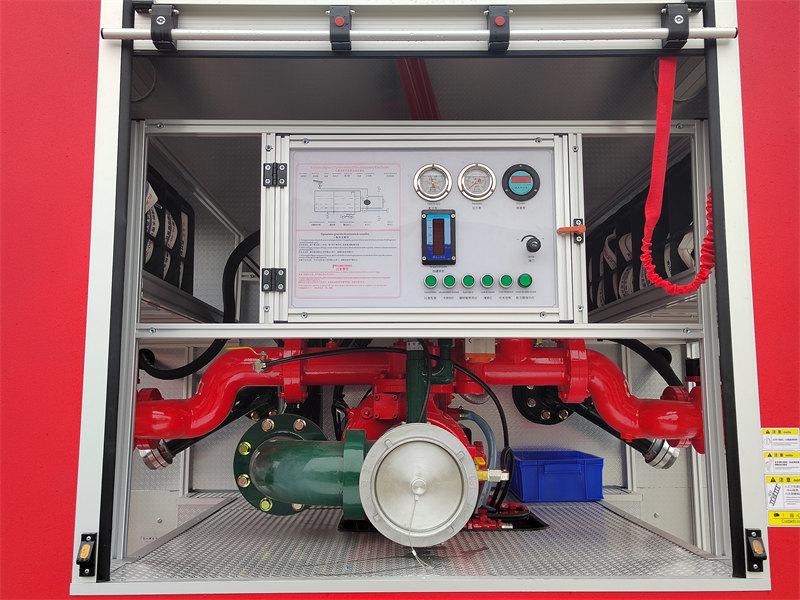 该车配备了消防炮、消防泵、灭火工具等一系列消防设备,能够快速扑灭火源,并配备大容量水箱,确保长时间作业能力。