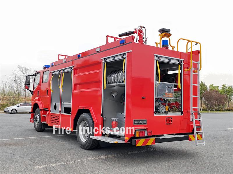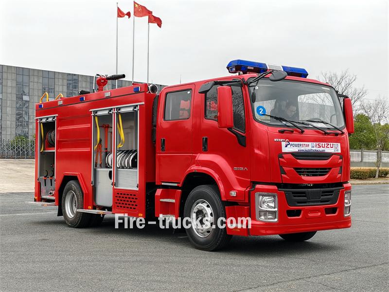 Water≥60 m,Foam≥48m本文介绍了一款基于五十铃FVZ GIGA高性能底盘的中型泡沫消防车。 巴拿马五十铃FVZ消防车车载泡沫罐 该消防车性能强劲,功能高度集成,配备5000升水箱和1000升不锈钢泡沫液箱,支持水和泡沫两种灭火模式,并配备CB10/40消防泵、PL8/32消防炮等消防设备。它能够远程精准定位火源,反应迅速,适用于城市社区、城镇、工业园区及常见化工火灾的快速灭火和初期控制。