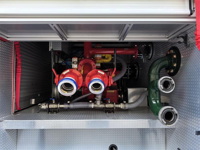 后部泵房配备有CB10/60-RS型消防泵和控制面板。车顶安装有PL8/48型消防炮,射程远、覆盖范围广、角度可调。该车集消防救援功能于一体,尤其擅长扑灭B类火灾,例如油类火灾,是保障城市和工业安全的核心装备。