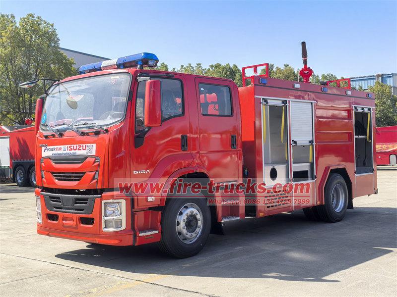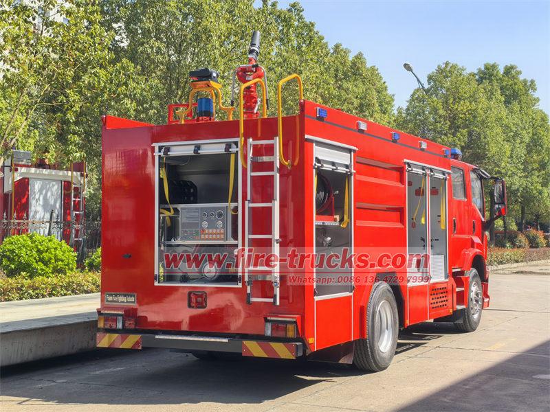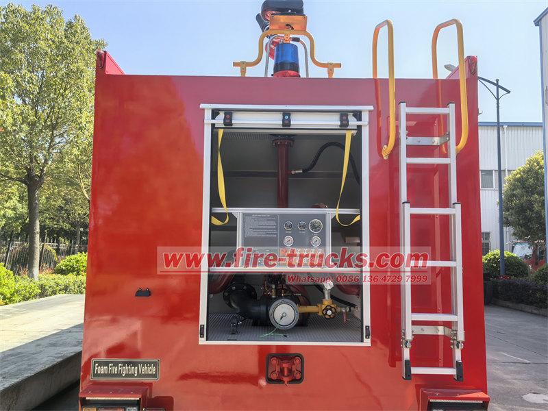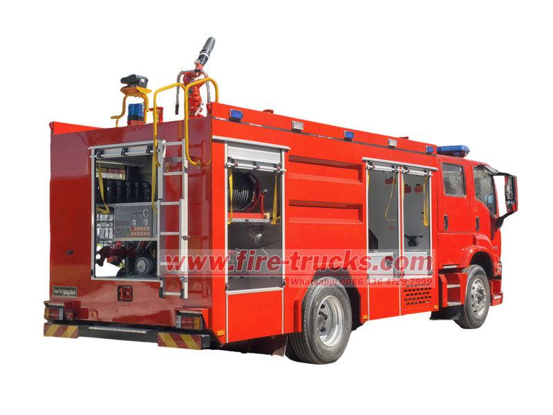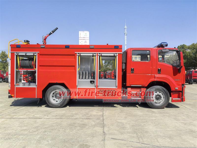 PP tank is optional五十铃 FTR 泡沫消防车,也称为五十铃 FTR 消防车、五十铃 FTR 油罐消防车,是一款基于五十铃 FTR 底盘专业设计和制造的消防救援车辆。它结合了水箱和泡沫罐,可有效应对各种火灾情况。该消防车采用双罐系统,一个 5,000 升碳钢水箱和一个 1,000 升不锈钢泡沫罐,确保充足的水源和专业的泡沫灭火能力。这使得它能够有效扑灭各种火灾,从普通固体物质火灾到油类和化学品火灾。凭借 8,360 × 2,510 × 3,550 毫米的紧凑尺寸和 4,500 毫米的轴距,该车辆保持了出色的机动性,能够在城市街道和工业区顺利行驶。