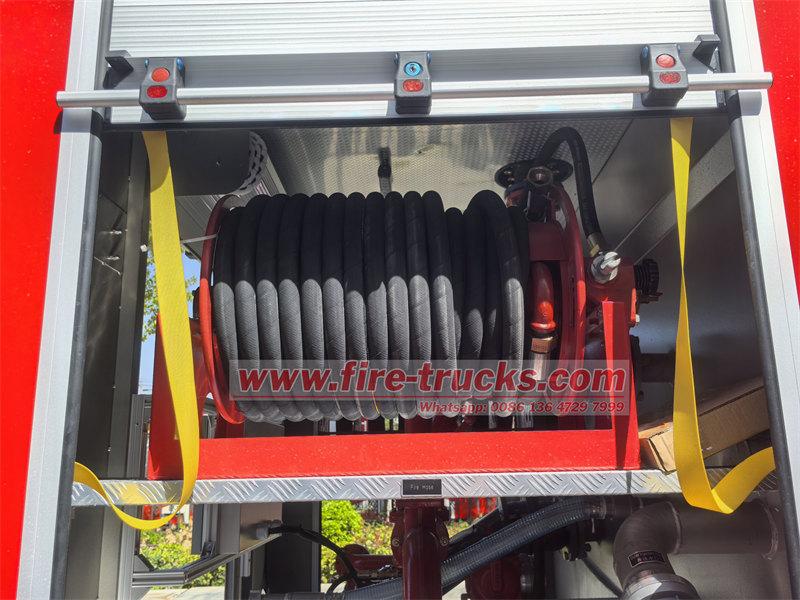 PH48 负压泡沫比例混合系统是其一大亮点,该系统采用铸铝外壳和不锈钢流道。混合比例可在 3% 至 6% 之间调节,确保泡沫与水的最佳比例,从而有效灭火。JPSC2.2-25 软管卷盘配备直径 25 毫米、长 30 米的软管,在入口压力为 2.5 MPa 时,喷嘴流量至少为 180 升/分钟,可提供灵活高效的近距离灭火。这些专业配置使五十铃 FTR 消防车能够应对从普通固体火灾到油基火灾的各种火灾类型。
